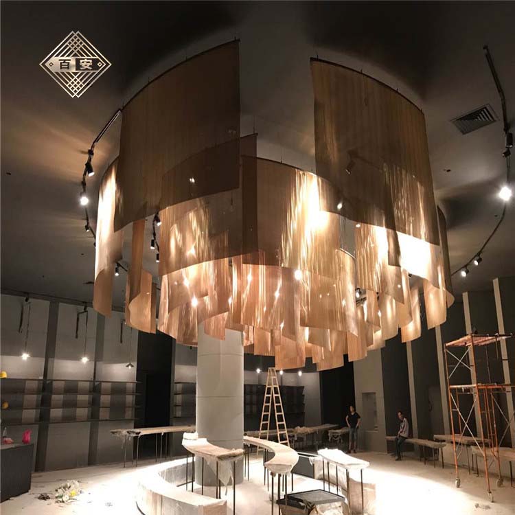 金屬裝飾網(wǎng)具有耐用、華麗、高科技的特點,廣泛應(yīng)用于窗戶、天花板、樓梯、電梯、豪華辦公樓、酒店、豪華舞廳、規(guī)劃廳等建筑的內(nèi)外裝飾。它在燈光下顯得富麗堂皇。金屬裝飾網(wǎng)可以加工成相配的顏色。它們除了保留了金屬的優(yōu)越性外,還易于保護(hù),潤滑表面易于清潔,很好地滿足了設(shè)計師對氣質(zhì)和特性的要求。金屬裝飾網(wǎng)線具有柔韌性和光澤度,掛簾色彩多變,在光線的折射下,幻覺空間有限,美不勝收。很好地滿足設(shè)計師對氣質(zhì)和性格的要求。